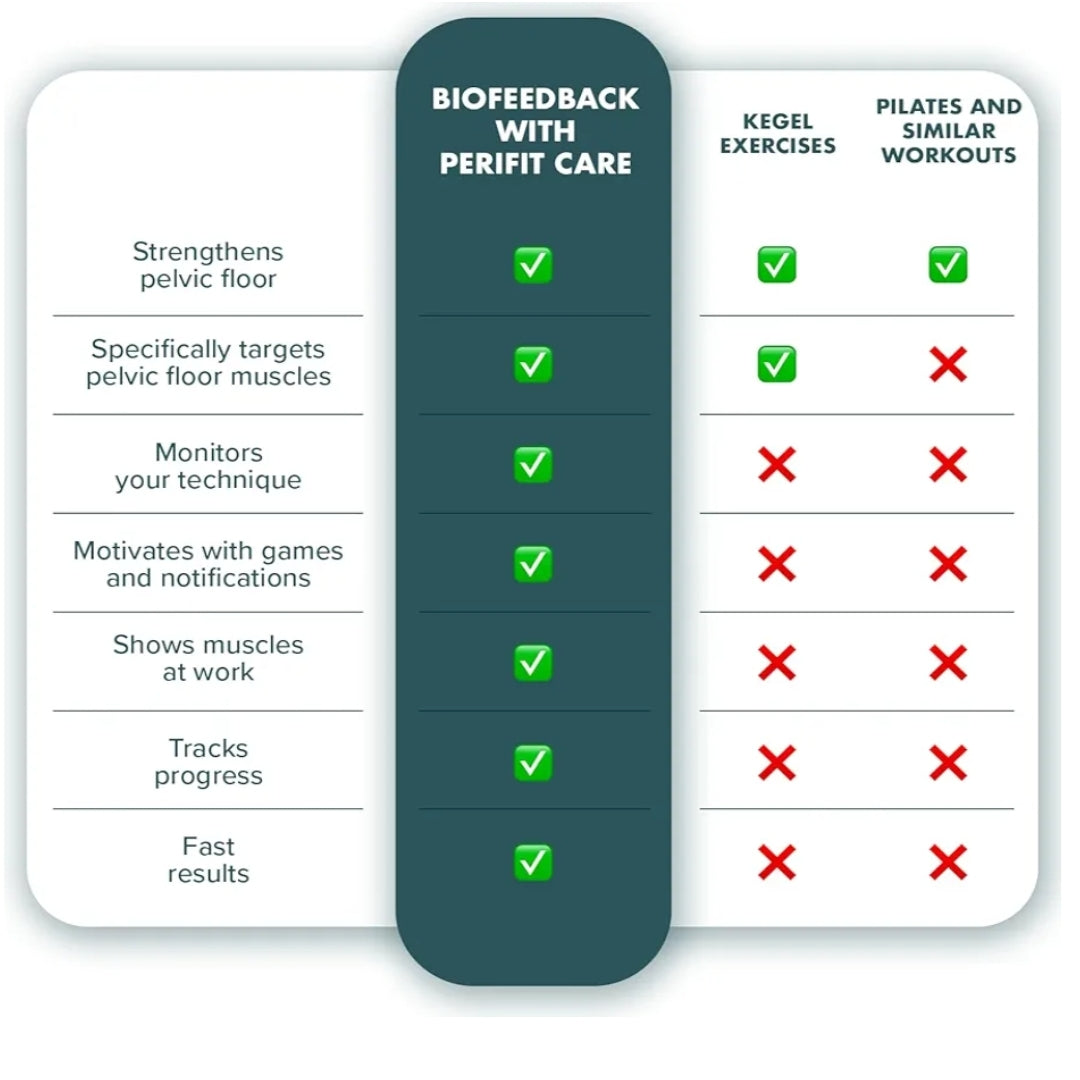 Take control of your pelvic health with Perifit Care, a clinically proven and doctor-recommended solution designed to strengthen your pelvic floor, reduce bladder leakage, and improve overall well-being. Using real-time biofeedback technology, Perifit Care detects incorrect contractions and helps you train effectively—all through fun, interactive games in the always-free Perifit app.